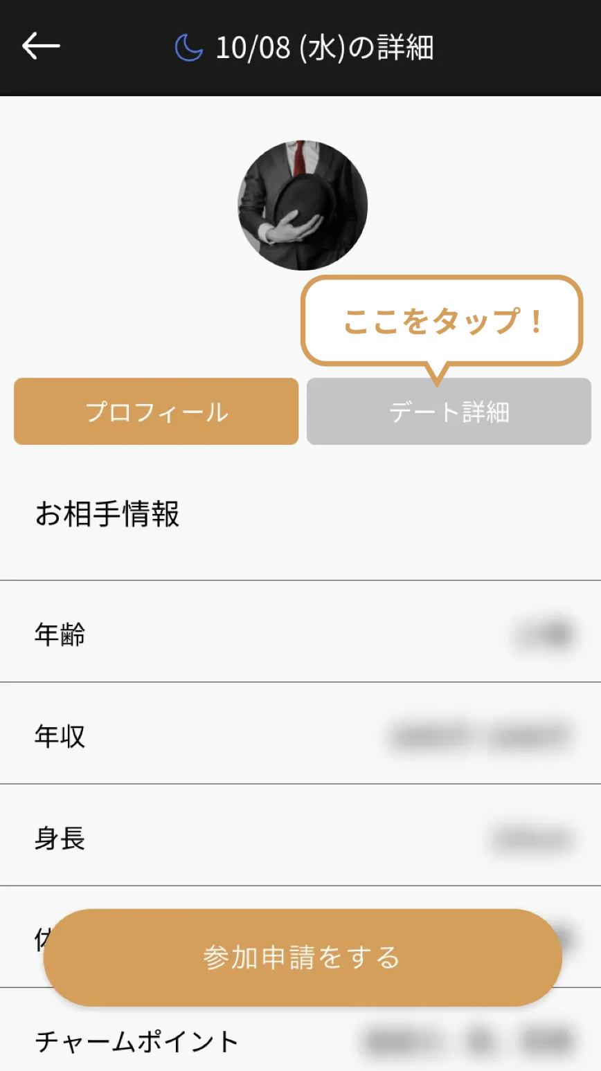 ② 「デート詳細」をタップ