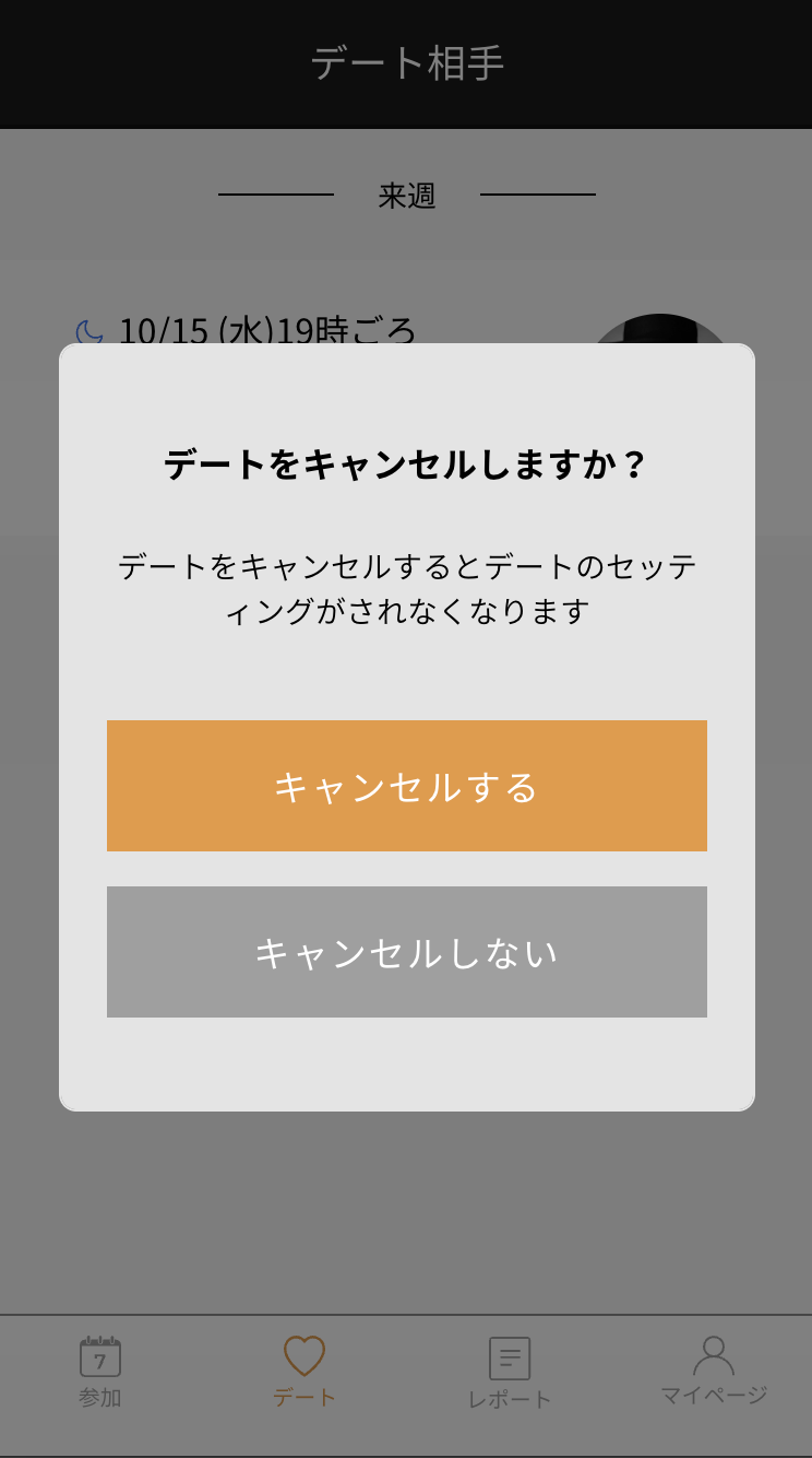④ 「デートのキャンセルする」をタップすると、キャンセルが完了します。