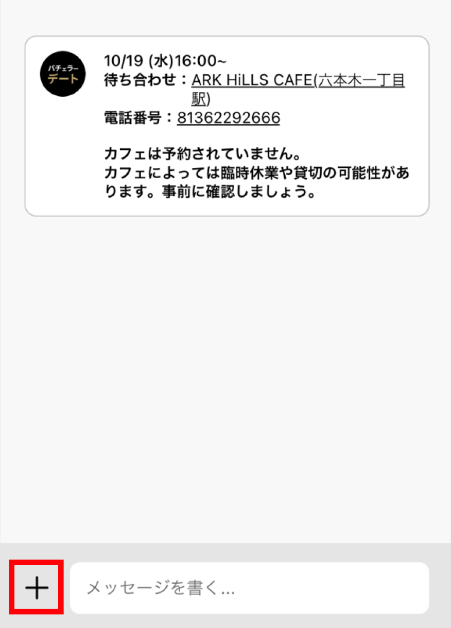 ① 待ち合わせチャット左下より【+】をタップ