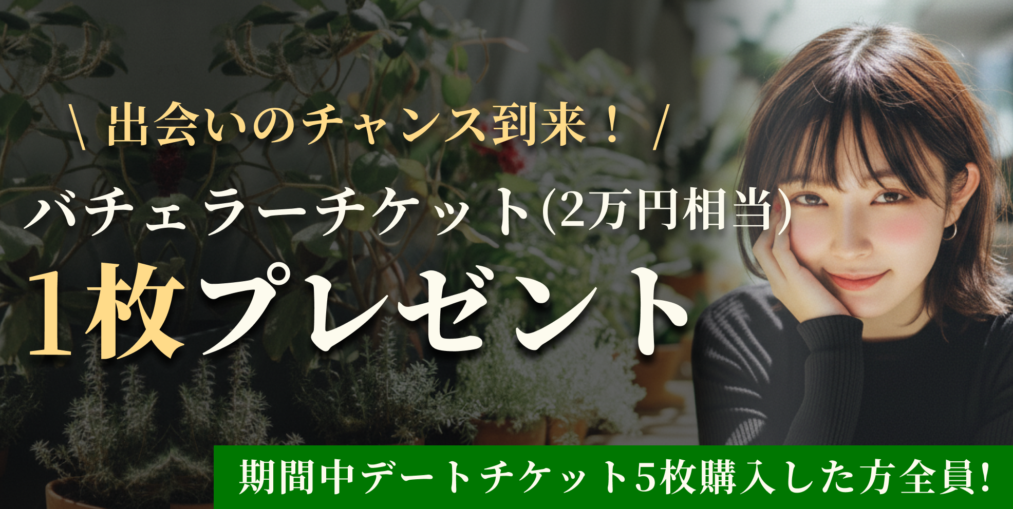 デートチケットを5枚ご購入いただくごとに『バチェラーチケット(2万円相当)』を1枚プレゼントいたします✨